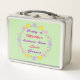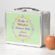 Esta impresionante lonchera presenta una selección de flores de bonito, incluyendo Cosmos color rosa pálido y brillante, Daisies rosados, Crisantemo púrpura pálido y azul olviden que no me florecen ni las mariposas amarillas forman un círculo alrededor de alguna bonito que escribe en púrpura y rosa que dice "Solamente una madre sabe cómo crece el amor". Un bonito diseño para celebrar a una madre.
