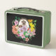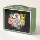 Un lindo erizo sentado entre coloridas flores de verano en el fondo de negro
