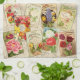 Las toallas de cocina, con tapas de catálogo de semilla vintage que se superponen con un fondo texturado, son ideales para el secado.
