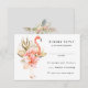 La carta de respuesta de la recepción nupcial de Boho incluye un flamingo rosa adornado con protea y otras flores tropicales. Perfecto para bodas y eventos tropicales, safari, zoológicos.