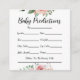 Esta es una tarjeta de predicción de flores florales rosas diseñada para bebé. Permite a los invitados adivinar el género, fecha de nacimiento, hora, peso, color del pelo, color del ojo, longitud y nombre. También hay una línea para dar consejos.
