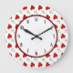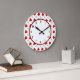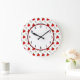 Reloj de pared de cocina retro con un patrón de fondo de fresas rojas y flores de fresa blancas con la cara blanca y números negros. Haga clic en Personalizar para agregar su nombre o mensaje, cambiar los colores de fondo y más.