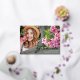 Una tarjeta de invitación única para graduación de fotos, con elementos de diseño de un elegante guión de estilo manuscrito con la palabra "Graduado" en Relieve metalizado real (las opciones de color de Relieve metalizado son oro, plata y rosa). La foto de los graduados está realzada por hermosas flores rosadas con un fondo verde sabio. La parte posterior de la tarjeta ofrece espacios de texto personalizados para obtener información sobre la graduación y el viaje futuro. Para ver más artículos como este, visita mi tienda aquí en "www.Zazzle.com/LakeViewCardCo". ¡Gracias