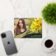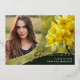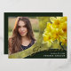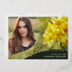 Una tarjeta de invitación única para graduación de fotos, con elementos de diseño de un elegante guión de estilo manuscrito con la palabra "Graduado" en Relieve metalizado real (las opciones de color de Relieve metalizado son oro, plata y rosa). La foto de los graduados está realzada por hermosas flores amarillas en un fondo verde forestal. La parte posterior de la tarjeta ofrece espacios de texto personalizados para obtener información sobre la graduación y el viaje futuro. Para ver más artículos como este, visita mi tienda aquí en "www.Zazzle.com/LakeViewCardCo". ¡Gracias