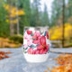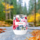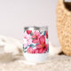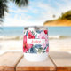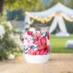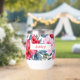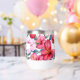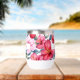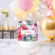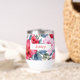 Taza de Vino Floral Rosa Roja con Flores de Hibisco de Acuarela Patrón Tropical. Utilice personalice esta plantilla para cambiar el texto