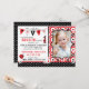 Impresión de polka-dot en blanco y negro con flores y fiestas de señora bugs diseño de tarjetas de invitación de cumpleaños. Edad 1.