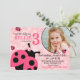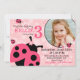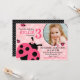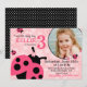 Impresión floral de color rosa dulce y errores de la señora con diseño de tarjeta de invitación de cumpleaños inverso a la impresión de polka-dot en blanco y negro.