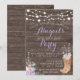 Elegante invitación country con diseño de madera, botas y flores.