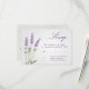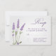 Hermosa Boda de flores de lavanda morada Responde tarjeta plana. En la parte trasera de la tarjeta, flores de lavanda sobre fondo de madera clara.