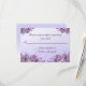 Las animadas vidas son el tema de esta elegante tarjeta RSVP de boda. En la parte delantera hay rociadores de lila rosa y malva sobre un fondo morado. La espalda tiene más flores. Personalizar el texto para tu ocasión especial.