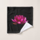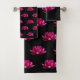 Añade un toque de drama a tu baño con esta toalla de baño con flores de loto de color rosa intenso y grandes salpicadas por un fondo negro.