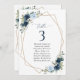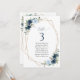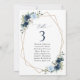 Añada un toque personal a la celebración de su boda con estos artículos fiestas elegantes y memorables. El diseño presenta flores de color azul y marino, vegetación y marco dorado sobre fondo blanco.