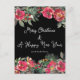 Flores de Navidad rojas elegantes sobre fondo negro. Tarjeta de vacaciones. Saludo para Navidad y Año Nuevo.