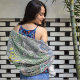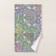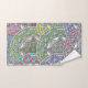 ¿Esto no le daría a un baño un aspecto diferente? El diseño combina paisajes, círculos y flores con los colores verde, azul, amarillo y rosa. Está hecho de lápices de colores.