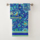 Hermoso conjunto de toallas con flores, pájaros, motivos respaldados en un brillante tono de azul real recortado en acuático y amarillo. Diseño vibrante único ideal para baños de invitados, o para ocasiones especiales como bodas, duchas, etc. Tenemos un gran surtido de toallas desde clásicas hasta eclécticas para satisfacer el gusto de todos.