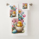 Flores de pato de Pascua y huevos Un adorable pato amarillo asoma a un huevo roto con patrones coloridos como rayas rosas y puntos de polka azul. Alrededor del huevo, las vibrantes flores primaverales como tulipanes, margaritas y cruces añaden un toque de color. La valla de fondo, de suave rosa pastel, crea una fresca atmósfera primaveral, convirtiendo todo el escenario en una encantadora explosión festiva de naturaleza y alegría.