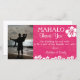 Sube tus fotos de boda o luna de miel para crear una tarjeta de agradecimiento personal para los invitados. Este diseño tiene un fondo floral tropical azalea rosa con una marca de agua. Un hibisco blanco y flores de playa adornan la carta. Para cambiar el tamaño o la posición de la foto, haga clic en el botón Personalizar. Por favor, envíeme un mensaje si necesita ayuda para formatear.