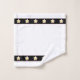 Flores de plumeria frangipani elegantes sobre el juego de toallas de baño en blanco y negro. Frangipani Flowers significa belleza, amor perfecto y lealtad.