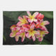 Esta toalla de mano está bellamente diseñada con una fotografía original de flores tropicales bonito rosa y amarilla Plumeria!