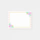 Spring Flowers Pink Stripes Post-it® Notes 4 x 3. Borde dorado con ramos florales (flores de primavera: tulipanes de coral y lila, comea rosa, crocus azul, brotes de león amarillo, hojas verdes). Rayas rosas claras. Sencillo, fresco y bonito.