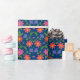 Un rollo de Giftwrap de moda, con un colorido patrón de flores Naranjas y rosas y puntos de Polka en un fondo azul profundo que se puede cambiar si se desea. (Negro, Blanco, Amarillo Dorado y Turquesa son grandes alternativas!) Parte de la colección "Rangoli" de Posh & Painterly, este patrón se adaptará a cualquier rollo de papel envuelto.