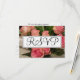 Tarjeta de RSVP de boda escrita en elegante escritura negra dentro de un marco geométrico blanco y plateado contra flores de rosa rosa. Fondo suave de rosa. Hermoso para una boda de primavera o verano. Personaliza la parte posterior en color dorado y texto negro sobre fondo blanco crujiente. Fotografía y diseño original de TamiraZDesigns.