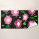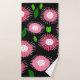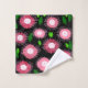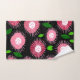 Este conjunto de toallas tiene un diseño escandinavo de flores minimalistas en tonos rosas y hojas en tonos verdes sobre un campo de negro.