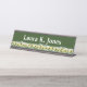 ¡Añade algo de alegría, sin importar si tienes este plato de nombres en tu escritorio o en tu puerta! La valla blanca de piquetes respalda una hilera de alegres girasoles. El diseño se muestra con un fondo verde *****que puede cambiar a cualquier color que prefiera. También puede cambiar el estilo del texto, el tamaño y el color.