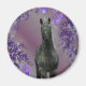 unicornio negro bonito rodeado por un imán de fantasía de flores moradas delicadas. Haga clic en el Personalizar para agregar el texto. Si tiene alguna pregunta o petición, por favor contáctame. Esta imagen está disponible en muchos productos de mi tienda. Por favor visite Smilin' Eyes Treasures para ver más fotografía de flores y naturaleza y tarjetas de arte digital y regalos.