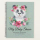 Adorable ilustracion gráfico acuático de un oso Panda con flores de boho rosa y morado de bonito para decorar. Agregue su propio texto, nombre para crear un enlazador personalizado único, planificador, libro de notas para mamáes futuras. Bonito regalo de Baby Shower.