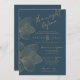 Establece el tono para una celebración navideña elegante e íntima con esta exquisita invitación a la cena de ensayo. El diseño presenta un fondo azul profundo y rico que evoca una sensación de calidez y festividad, perfecto para la temporada. Adornando elegantemente los bordes, un delicado dibujo lineal de flores en dorado brillante añade un toque de sofisticación y lujo. Los elementos florales, sutiles pero llamativos, crean un equilibrio armonioso, con curvas elegantes y detalles intrincados que son a la vez atemporales y modernos. El texto de la invitación está bellamente dispuesto en una escritura dorada complementaria, invitando a los invitados a unirse a la celebración del amor, la risa y los nuevos comienzos.