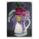La original se pinta en un tablero oval. El blanco pasado de moda esmaltó la jarra que sostenía un ramo de flores - rosas, margaritas, cordón de la reina Anne, ranúnculos y glicinias.