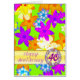 Una tarjeta de aniversario boda para regalar a una pareja. Fabulosas flores de "op art" en colores brillantes. Una carta vibrante que dice '¡FELIZ!' Las flores multicolores se deslizan sobre un fondo verde. La tarjeta se deja en blanco para utilizarla como tarjeta de nota, o para su propio mensaje, Vea las tarjetas de rango completo de mi tienda. Todas las obras de arte son propiedad de Norma Cornes.