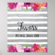 Impresión poster para favorecer la seña boda con diseño de flores y fondo falso de rayas de Relieve metalizado plateado.