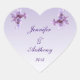 Las animadas vidas son el tema de estos elegantes pegatinas nupciales que cuentan con pulverizaciones de lila rosa y malva sobre un fondo morado pálido degradado. Todo el texto puede ser personalizado para su ocasión especial.