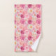 Un conjunto de toallas de baño florales de color rosa, blanco, rosa suave y magenta. El conjunto incluye toalla de baño, toalla de mano y paño de lavado. También se puede comprar por separado.