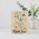 Este diseño de postal de agradecimiento incluye el mensaje "¡Gracias!" en la parte delantera, junto con flores, tallos y hojas. En la parte posterior aparece un mensaje personalizado de apreciación.