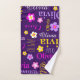 Toallas personalizadas de nombre de texto diseñadas originalmente. En color púrpura, rosa, blanco y amarillo el estilo gráfico de texto y flores también se puede personalizar con tu propio nombre corto, actualmente dice Olivia. Hay otros colores, nombres y estilos disponibles o póngase en contacto conmigo para solicitar nombres. Arte original y diseño de Sarah Trett para www.mylittleeden.com