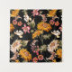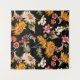 Flores hermoso patrón sin fisuras. Repetición de la textura de la tela. Elemento floral colorido de girasoles amarillos, con plantas, hojas, lirio, tulipán, peonía. Fondo negro.