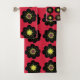 Negro y rojo, flores hippie, estampado floral en el diseño de tejidos escandinavos.