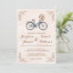 Invitación a la boda con flores diseño de bicicleta y fondo acuarela.