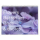 Este calendario de 12 meses tiene flores de cerezo, tulipanes, poinsettias y otras hermosas flores, así como algunas mariposas y pájaros, y citas inspiradoras sobre la naturaleza: ENERO La tierra ríe con flores (Ralph Waldo Emerson). FEBRERO Fe es el ave que siente la luz cuando el amanecer sigue oscuro (Rabindranath Tagore). MARCH Las flores y las mariposas se deslizan en color, iluminando el resorte (desconocido). ABRIL Haga algo hoy que le anime a florecer (desconocido). MAY Cada flor es un alma que florece en la naturaleza (Gerard De Nerval). JUNIO En alegría o tristeza, las flores son nuestros amigos constantes (Okakura Kakuzo). JULIO Tal vez la mariposa sea la prueba de que puedes pasar por una gran cantidad de oscuridad y seguir siendo algo hermoso (desconocido). AGOSTO Sed como un pájaro encaramado en una frágil rama que siente que se dobla debajo de ella, y aún canta igual, sabiendo que tiene alas (Victor Hugo). SEPTIEMBRE Una flor es una sonrisa del cielo (desconocida). ¡Mi jardín es mi obra maestra más hermosa! (Claude Monet). NOVIEMBRE ¿Cómo se convierte una mariposa? Tienes que aprender a volar tanto que estás dispuesto a dejar de ser una oruga (desconocida). DICIEMBRE '¡Esta es mi fe en que cada flor disfruta del aire que respira! (William Wordsworth).