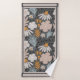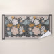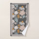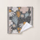 Toalla contemporánea con Perwinkle, Rubor, flores Naranjas con fondo marrón.
