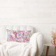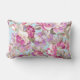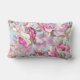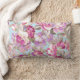 Esta bonita almohada presenta un elegante fondo azul claro con flores moradas y rosas.