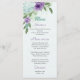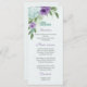 flores románticas azules y violetas verdes hojas botánicas menú boda
