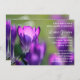Este diseño cuenta con una foto de hermosas flores de crocus púrpura. Esta romántica invitación es perfecta para disfrutar de las duchas nupciales o de los temas bodas, tanto en el jardín como en la primavera. Para cambiar el estilo de fuente, haga clic en el botón Personalizar. También puede agregar texto al reverso de la invitación si necesita más espacio para la información. Por favor, envíame cualquier pregunta.