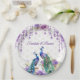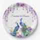 Flores pavo real y púrpura acuardan los platos fiestas personalizados de la vajilla boda india. Dos hermosos pavos reales flores de jazmín púrpura glicinas colgantes y guirnaldas planchas de fiesta