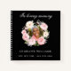 Un libro de invitados para un funeral o funeral. Un fondo negro clásico, decorado con una corona floral rosa y blanca. Personalice y agregue una foto, nombre y fechas.