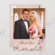 Esta elegante tarjeta de felicitación plegada con fotos de boda tiene un suave fondo lila con un diseño floral de acuarela con flores de lirio morado oscuro y claro en el fondo y a la derecha. Hacia el fondo, gracias está escrito en una moderna letra cursiva. En la parte superior, puedes personalizar esto con tu fotografía. En el interior, se puede personalizar fácilmente el mensaje de agradecimiento junto con los nombres de la novia y del novio. Los colores utilizados en este conjunto de bodas dulces son perfectos para un boda de primavera o verano.