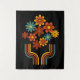 Este súper fresco tapiz retro de flores seguramente añadirá un toque de color e interés a cualquier habitación. Las flores de colores vivos son impresionantes, sobre un fondo negro. Dale esto como un regalo a tu amigo retro-amante, a tu familiar o a ti mismo.
